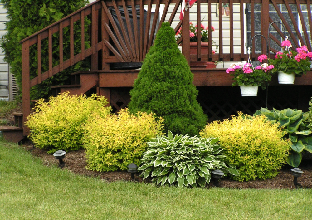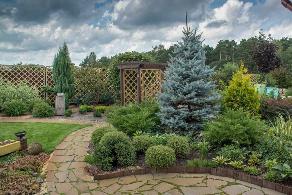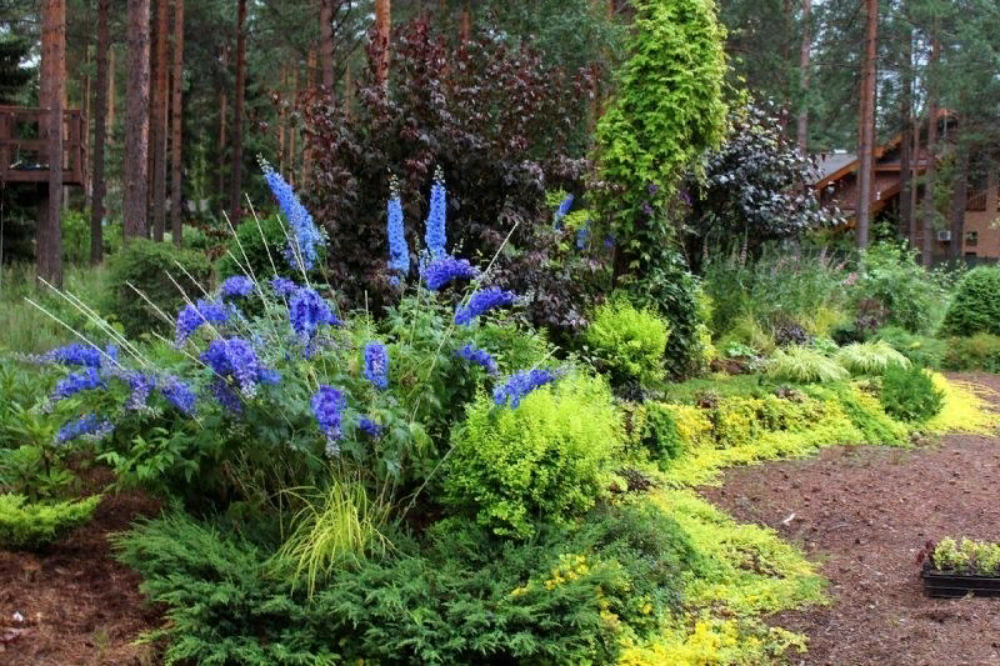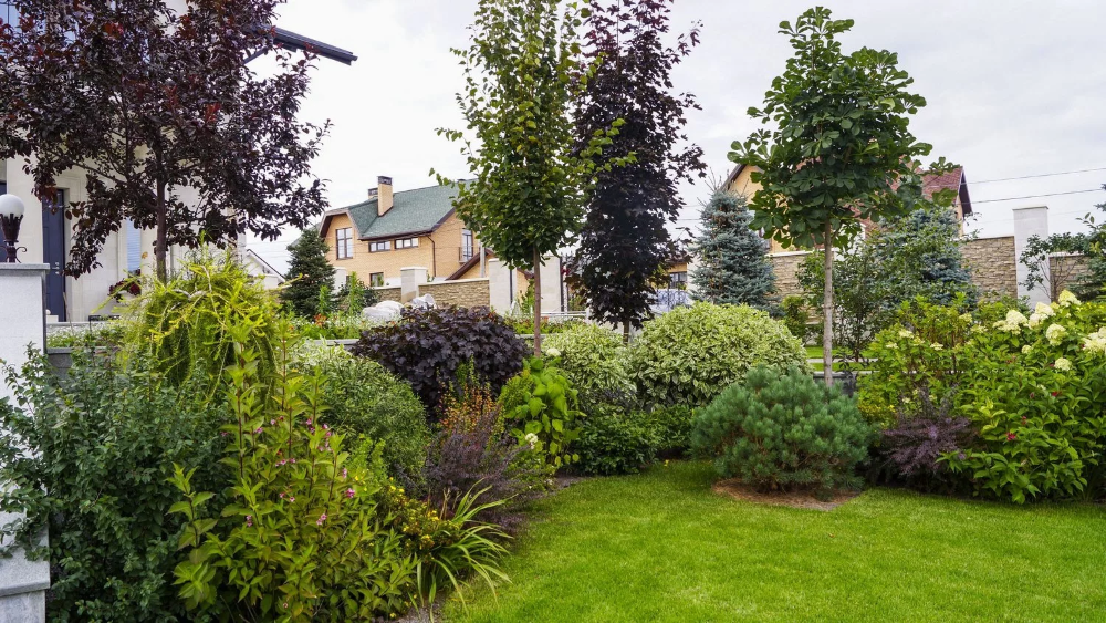 Сажайте декоративные деревья и кустарники. Малоуходный сад.