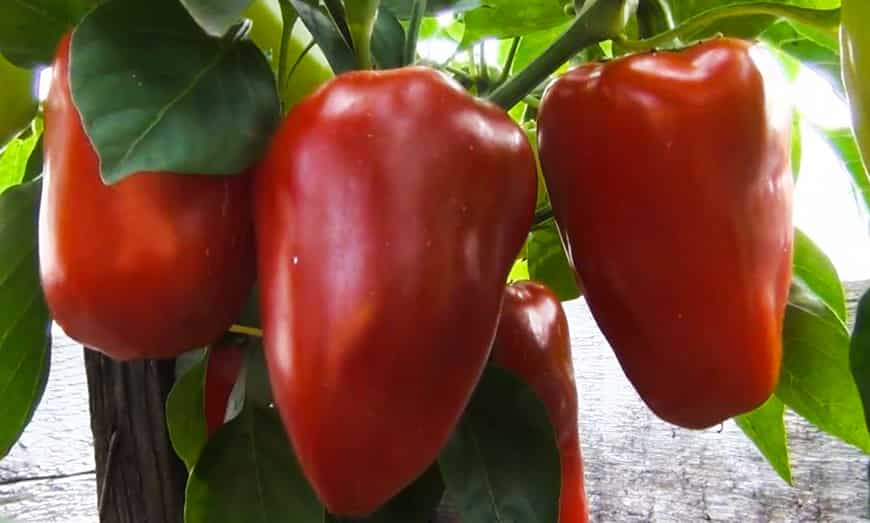 Необычное название не связано с высокими урожаями. Перцы имеют необычную треугольную форму, напоминающую египетскую пирамиду. Однако они не идеально треугольные, а умеренно округлые. Что касается урожайности, то этот показатель достигает 6 кг/1 м2. Детерминантное растение высотой 50 см прекрасно удерживается без опоры. Плоды имеют длину 12 см, весят 150 г, а созревают через 98 суток.