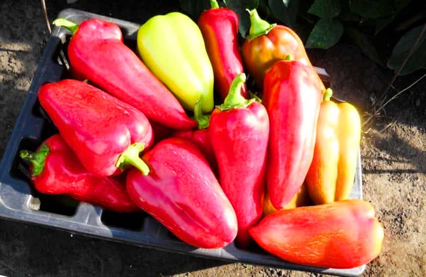 Первый урожай можно получить в середине августа, а последний – перед зимой. Собирают перец в основном когда он находится в техническо-биологической стадии созревания. В это время в плодах концентрируется оптимальное количество полезных элементов, включая витамины, соли, сахар. Определить, что пора заняться сбором перца, просто – по звуку: спелые овощи начинают потрескивать.