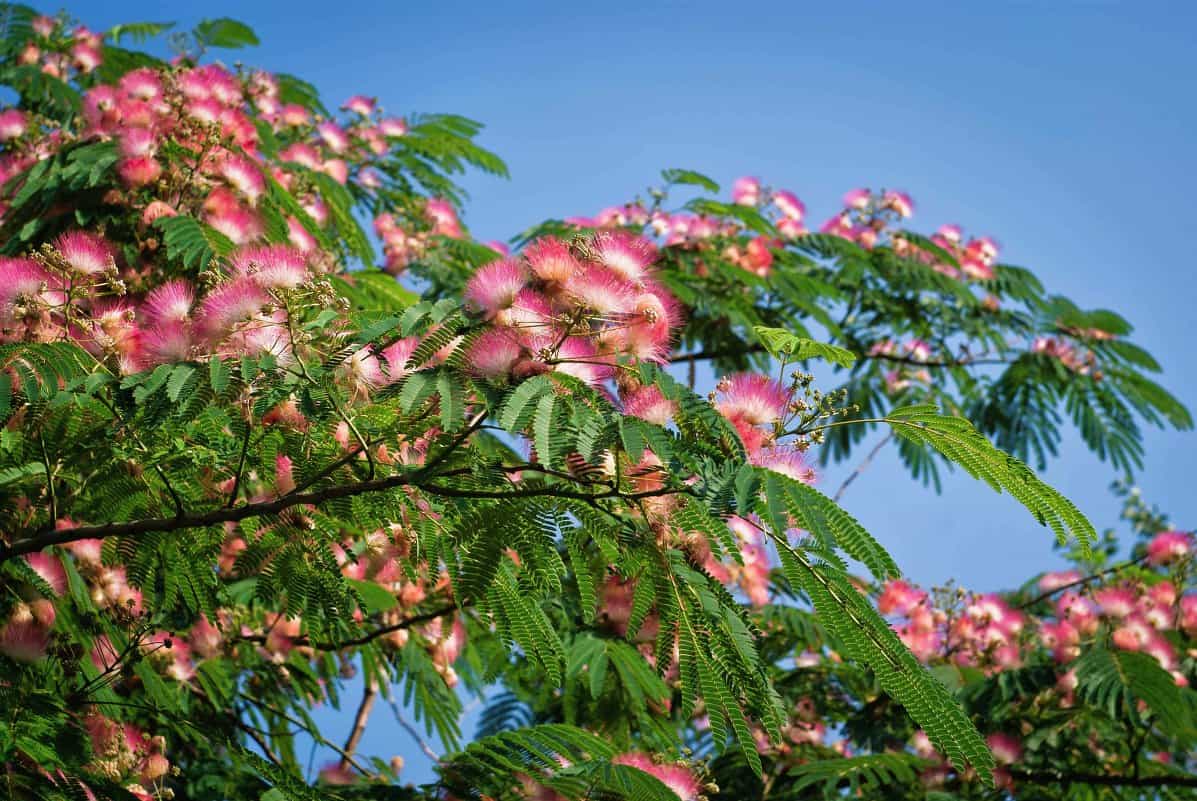 Наибольшая высота альбиции помпадур, это еще одно из ее названий, в условиях приусадебного участка около 15 метров. В природе представители этого вида могут достигать 20 метров. Альбиция шелковая — теплолюбивое, засухоустойчивое растение.