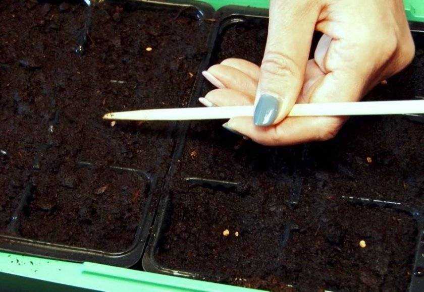 Семена высаживают в стаканчики или торфяные таблетки по одному, в ящики — на расстоянии друг от друга не меньше полтора сантиметра. Семена помещаются на глубину 1 см. После высевания посевной материал следует полить и накрыть прозрачной плёнкой или стеклом для поддержания необходимой влажности.
