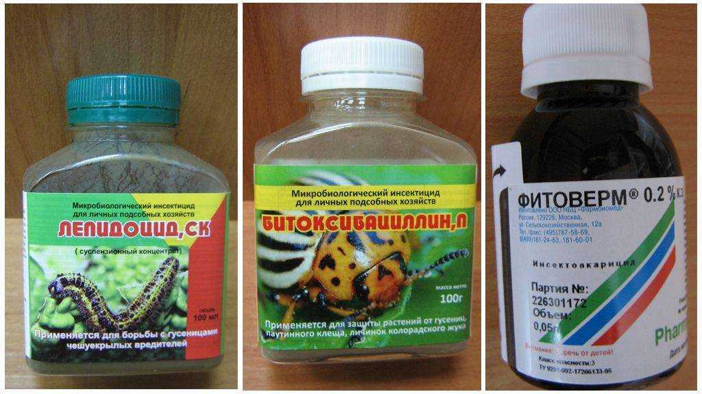 - Лепидоцид – биопрепарат кишечного действия, избирателен по отношению к листогрызущим, действуя при помощи спор микробов Bacillus thuringiensis var. Kurstaki. После попадания в организм насекомых бактерии длительное время вырабатывают кристаллы, поражающие вредителей, что приводит к их гибели. Эффективность его высокая, т. к. им можно травить гусениц на деревьях, причем препарат не вызывает привыкания.