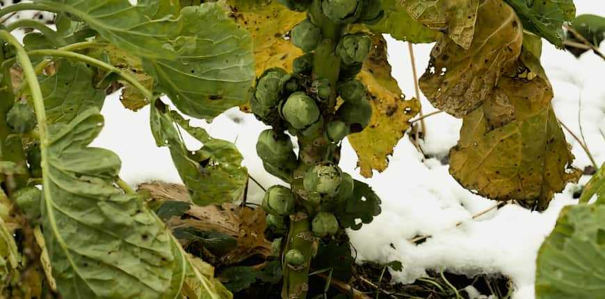Если выкопать растения и прикопать в парнике, теплице, контейнерах в подвале, поддерживать почву увлажненной, сезон можно продлить (доращивают брюссельскую капусту при температуре от 3-х до 5-ти градусов).