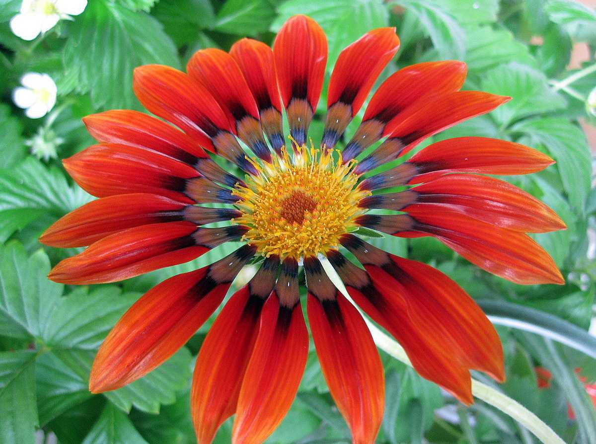 Гацания – малоизвестное название декоративного цветка, который в обиходе чаще именуется африканской ромашкой или полуденным солнцем. На фото ее трудно спутать с другими растениями, ее уникальная желто-красно-оранжевая гамма бросается в глаза на приусадебных участках, в палисадниках, а также на декоративных клумбах.