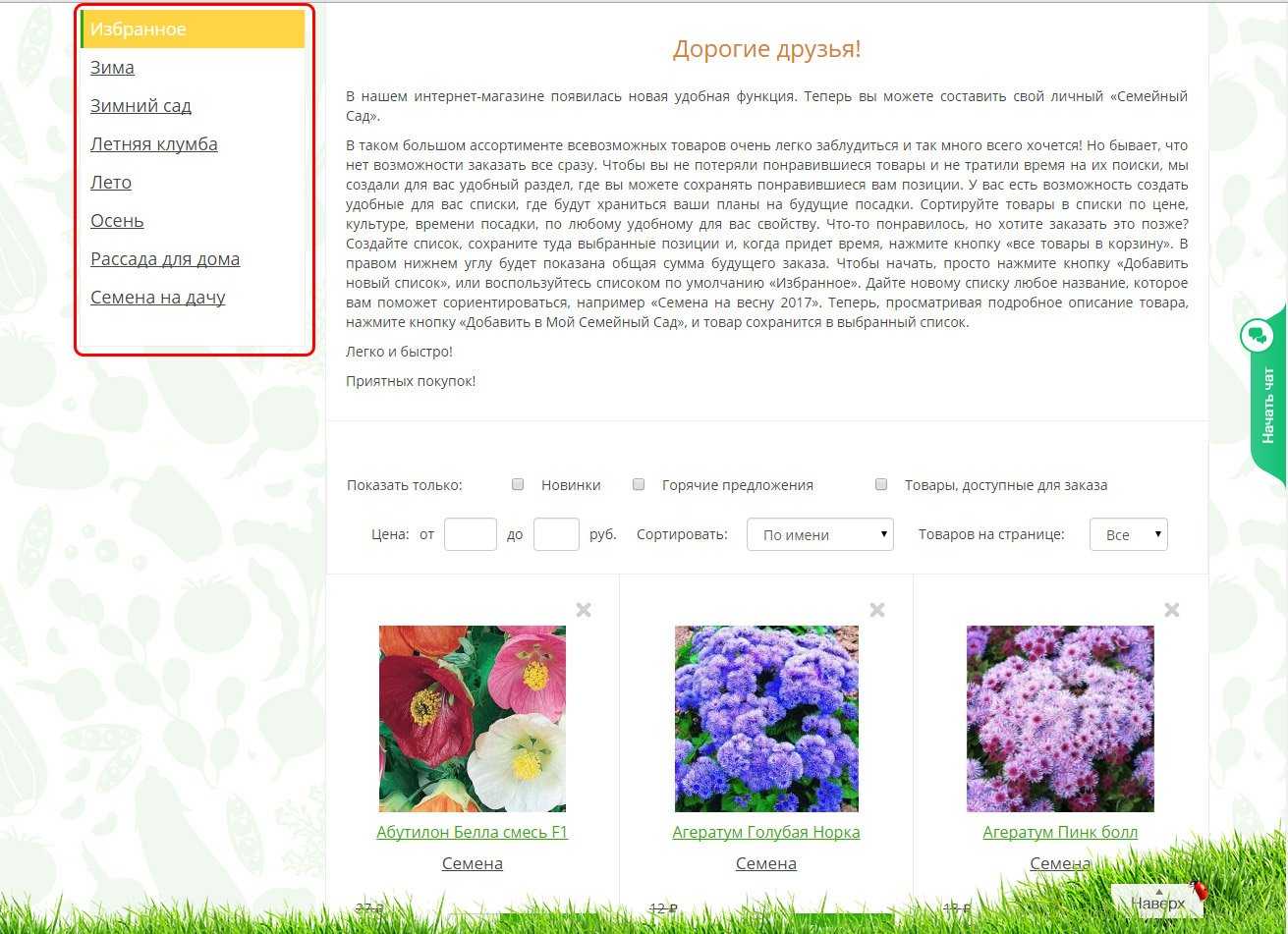 Чтобы начать, воспользуйтесь уже созданным списком «Избранное», сохраняйте в него все понравившиеся вам позиции. Если хотите создать список со своим названием, просто нажмите кнопку «Добавить новый список». Дайте ему любое название, которое вам поможет сориентироваться, например «Семена на 2016 год», «Моя клуба», «Летняя клумба» и др. И когда придет час, в несколько кликов закажите весь необходимы товар, например, для Вашего зимнего сада.
