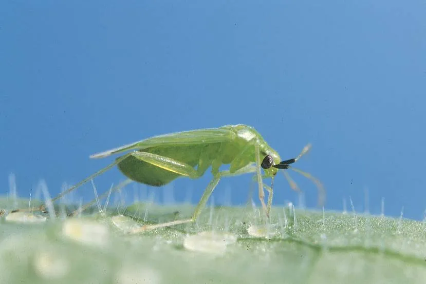 Белокрылка — очень мелкий сосущий вредитель, который питается соками растения.