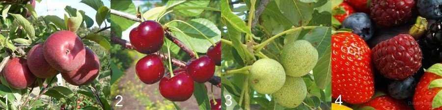 Рисунок 3. Популярные виды садовых культур: 1 — семечковые, 2 — косточковые, 3 — орехоплодные, 4 — ягодные