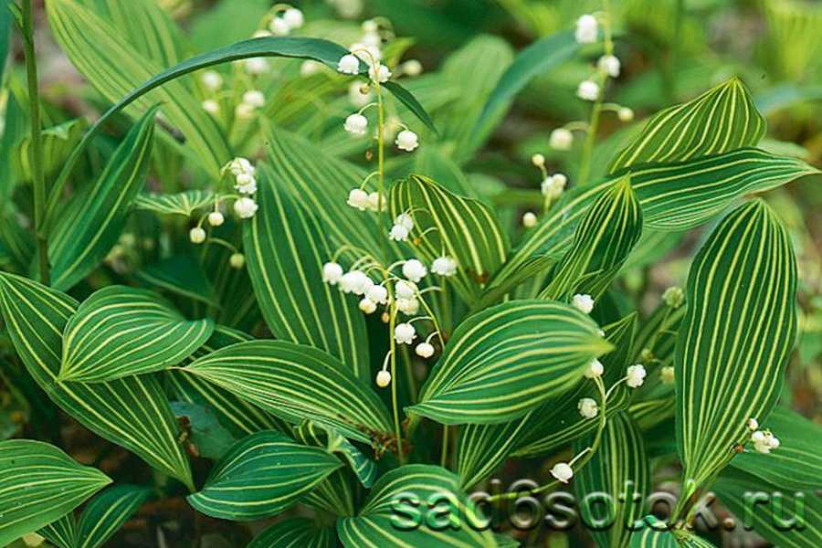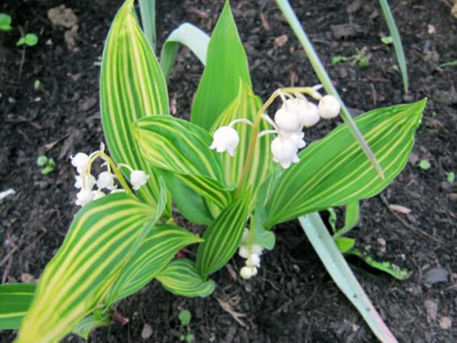 - Aldostriata — один из декоративных сортов ландыша, который даже после цветения может стать необычным украшением сада. Для этого послужили длинные полосы кремово-желтого оттенка на листьях.