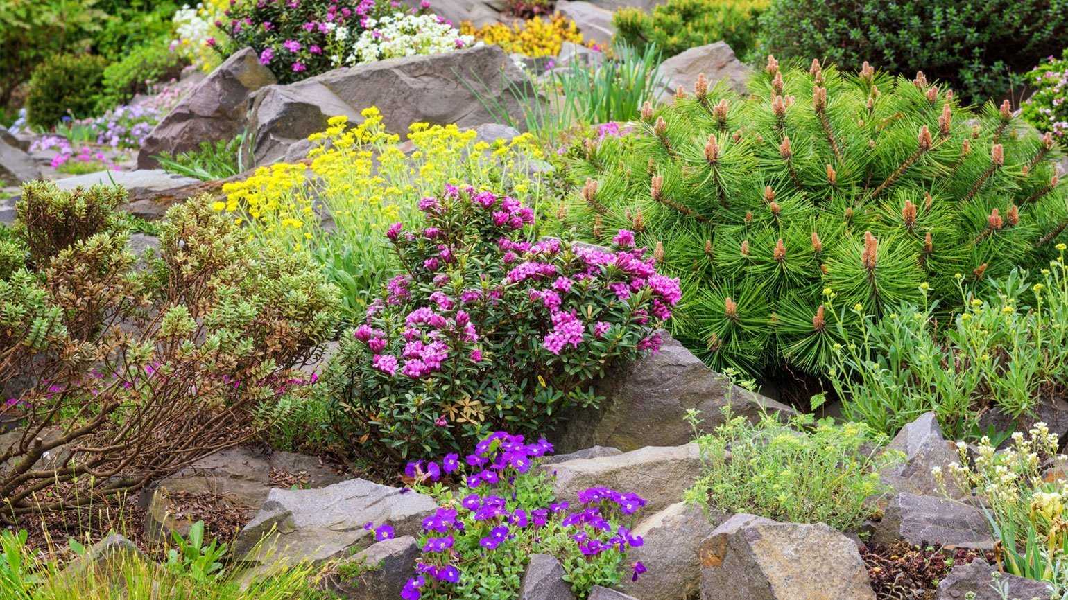 Однако главный визуальный элемент горки ― растения. Как правило, выбор ограничен не слишком привередливыми сортами, которым будет комфортно на специфической каменистой «почве», под прямыми солнечными лучами и при минимальном уходе.