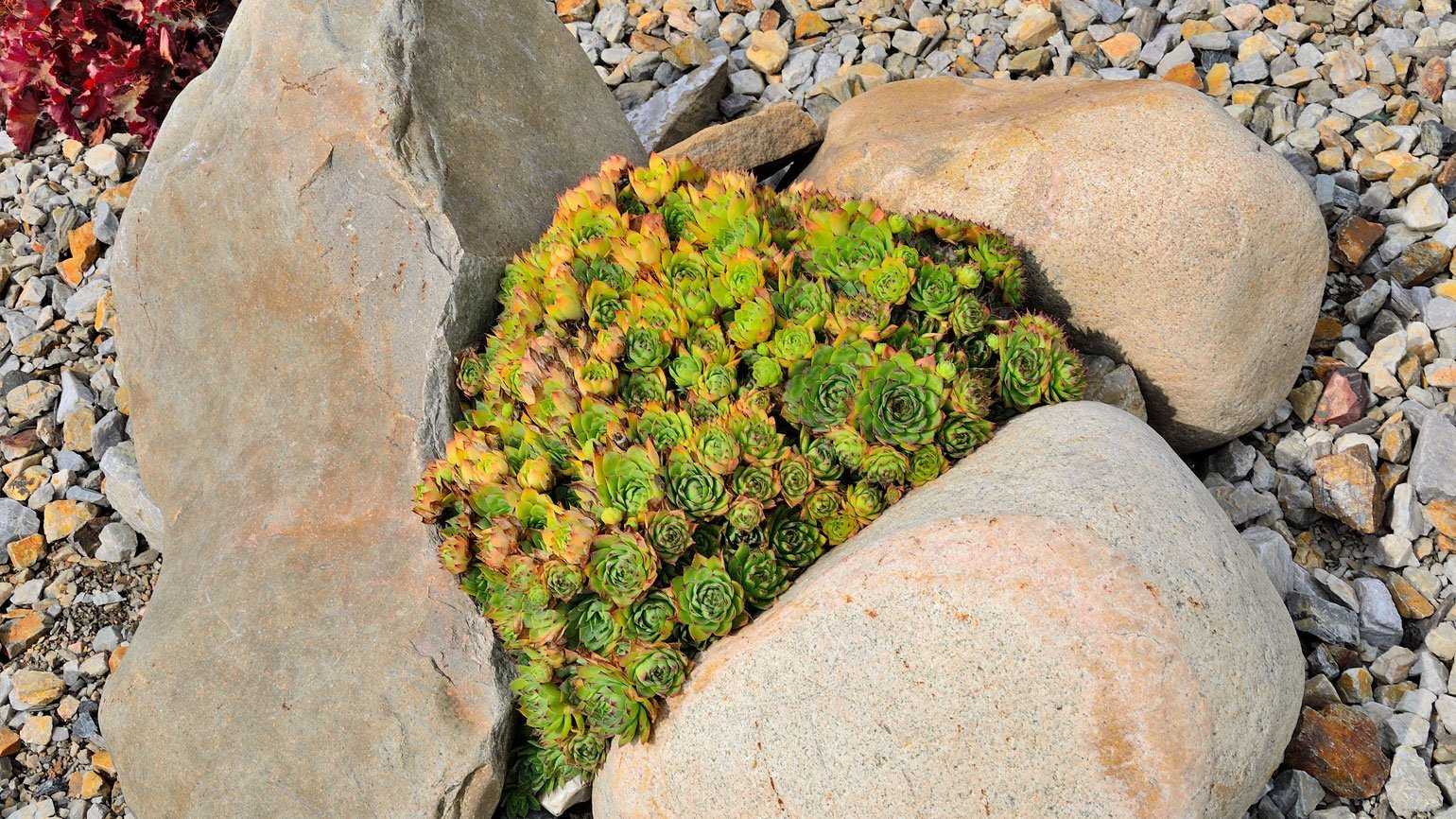 Почвопокровные растения, окружая и обволакивая валуны, соединяют мертвую природу с живой