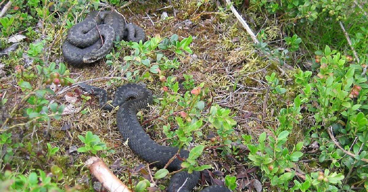 Гадюка обыкновенная. Ее легко распознать по зигзагообразной черной или коричневой полосе вдоль хребта. Верхняя часть тела окрашена в серые и коричневатые тона с оливковым оттенком. Брюхо – черного или серого цвета.