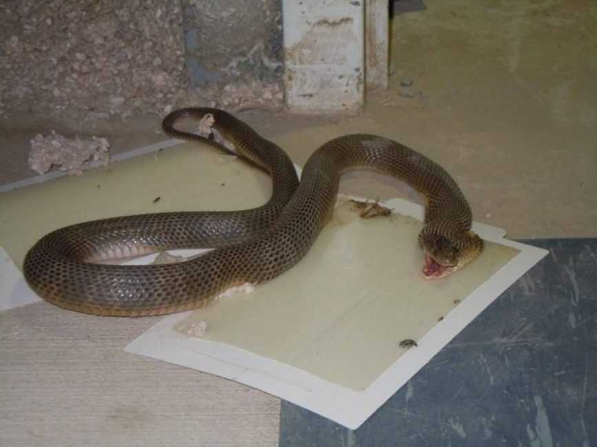 Одну из простых ловушек можно сделать из небольшого куска фанеры и двухсторонней липкой бумаги. Липкий материал одной стороной наклеивают на основу и располагают в месте, где была замечена змея: она должна проползти по этому же месту и прилипнуть. Однако этот вариант подойдет лишь тем, кто не боится чешуйчатых, поскольку змею придется снять с ловушки и вынести подальше от участка.