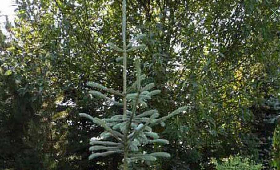 Пихта конусовидная, в 10 лет достигает высоты 1 м. Синяя двулетняя хвоя на кусте выгодно оттеняется бело-кремовой порослью. Контраст сохраняется около месяца, после чего молодая хвоя постепенно приобретает голубой оттенок.