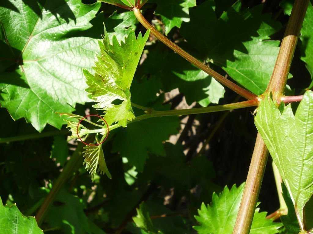 Примерно через месяц после распускания почек на молодой однолетней лозе из пазух черешков листьев появляются побеги 2-го порядка — пасынки. Листья у них мельче, чем на основной лозе.
