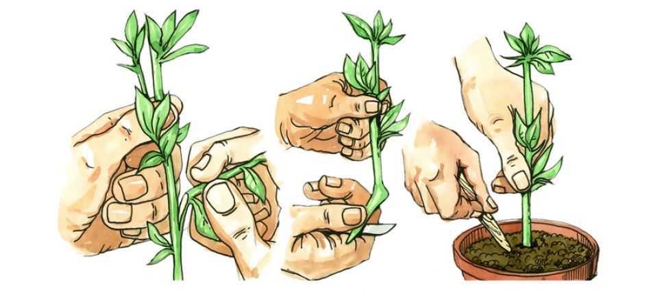 - Нижние листья обрывают, концы побегов на сутки погружают в стимулятор роста.