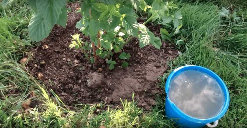 Чтобы ростки малины были крепкими, поздней осенью отдельно каждое растение сильно поливают сверху мульчи.