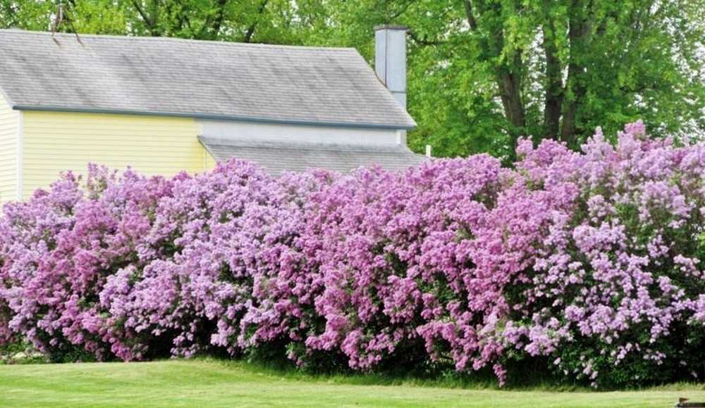 Можно сделать из сиреневых кустов настоящую живую изгородь, которая будет и участок защищать от любопытных глаз, и украшать его. Кроме того, можно использовать живую изгородь и для деления внутреннего пространства участка на зоны. Чтобы сформировать подобную конструкцию, нужно вначале посадить несколько кустов по одной линии. Длина линии должна соответствовать необходимой протяженности изгороди.