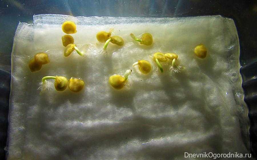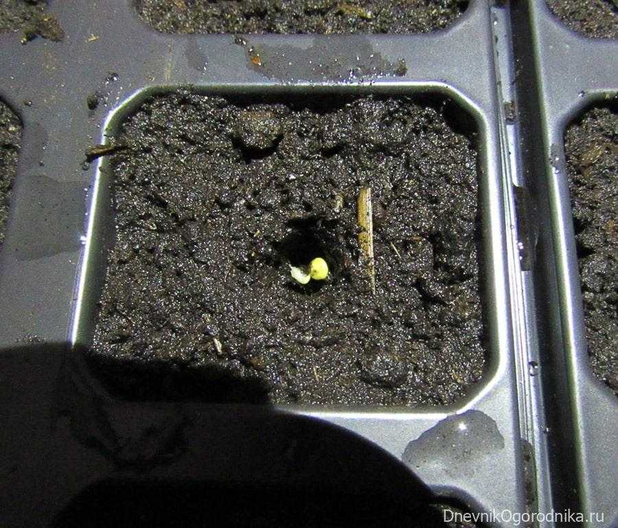 Перед посадкой отбирают самые наполненные семена, замачивают их в розовом растворе марганцовокислого калия на 20 мин., промывают и выкладывают во влажную ткань, смоченную в воде. Выдерживают в ней на протяжении суток в теплом месте, после этого высевают в контейнеры по два семени. Емкости устанавливают в поддон, помещают в полиэтиленовый мешок и ставят в помещение с постоянной температурой воздуха примерно 25 °С.