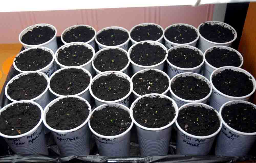 Семена (сухие, после замачивания в стимуляторе роста или проросшие) раскладывают на грунте. Если используют отдельные стаканчики, то в каждый кладут по 1 проклюнувшемуся или по 2-3 непроклюнувшихся на расстоянии около 2 см друг от друга. В дальнейшем, если появятся 2 или 3 ростка, необходимо оставить только 1, остальные нужно аккуратно удалить – срезать или прищипнуть под корень.