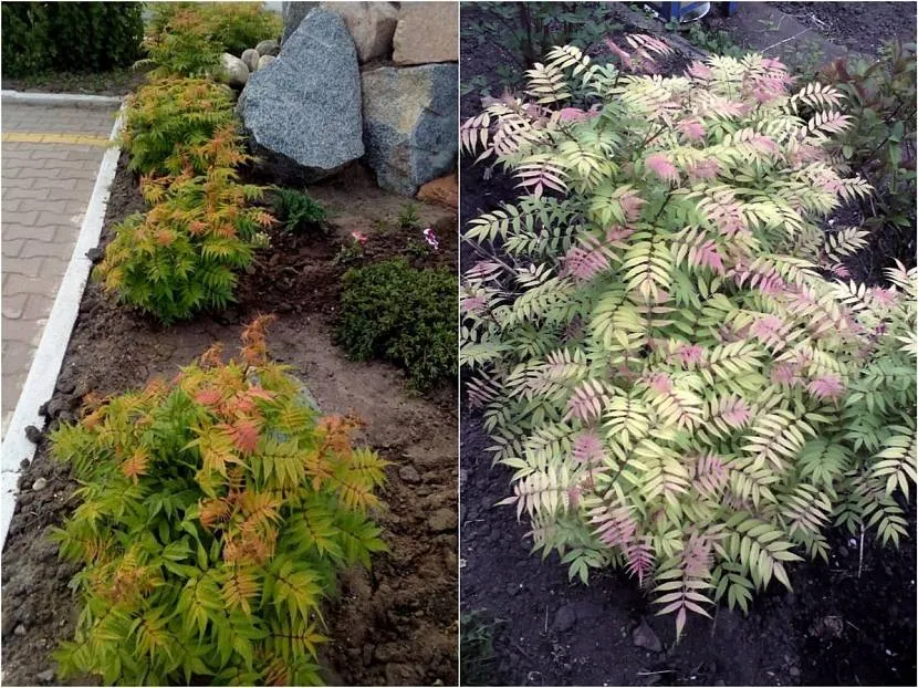 - Изящные перистые листья и крупные соцветия делают кустарник подходящим для декоративного использования.