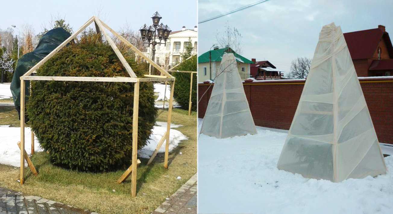 Т.к. туя в зимний период долгое время находилась в темноте, с начала весны ее, в пасмурные дни, нужно на несколько часов открывать, чтобы дерево постепенно адаптировалось.