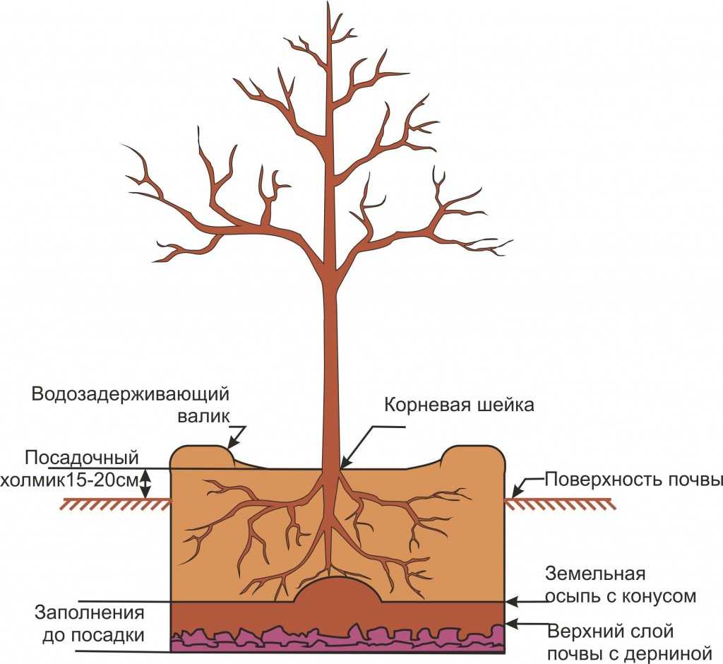 Посадка плодовых деревьев на искусственных возвышенностях рекомендована на низких участках с высоким уровнем грунтовых вод. Грунтовые воды нарушают естественный воздухообмен, в результате которого накапливается губительная для корневой системы углекислота. В такой среде корни постепенно загнивают.
