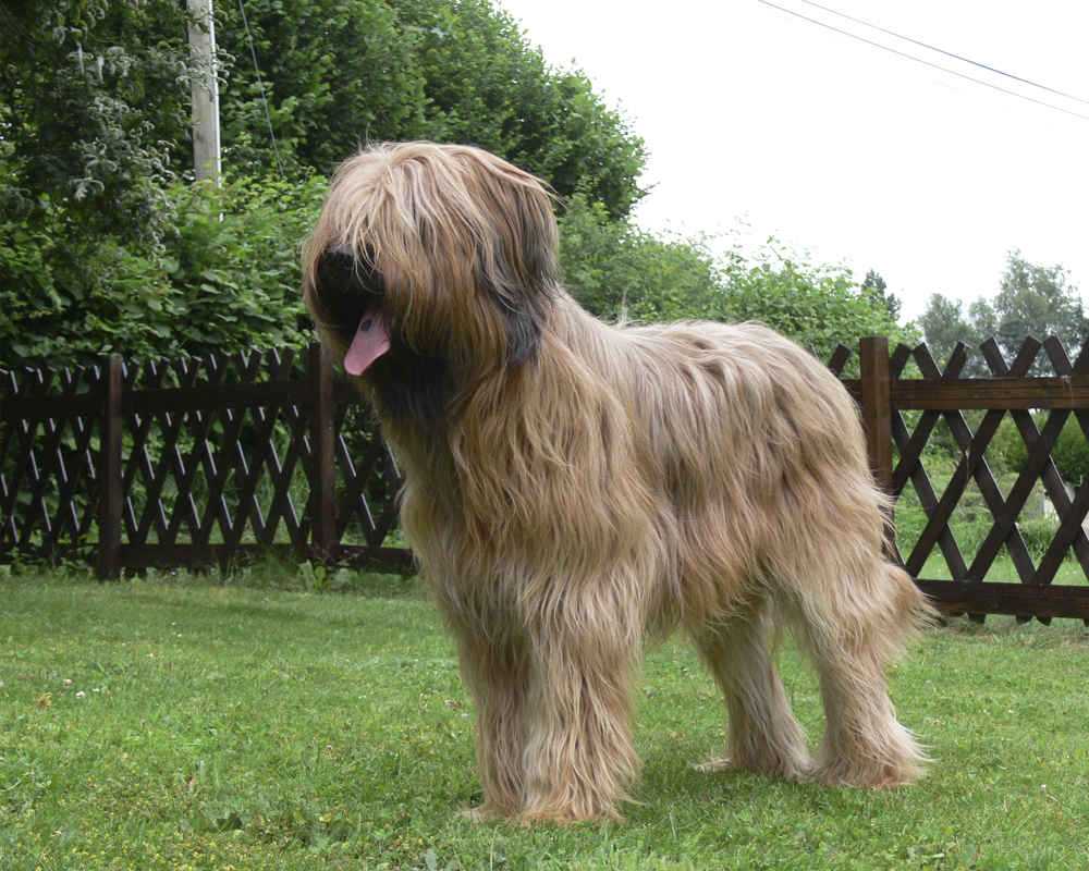Бриар – французская пастушья овчарка с длинной шерстью по всему корпусу и стильной лохматой челкой на лбу, скрывающей глаза. Среди заводчиков ценится за острый ум, живость характера и самостоятельность в принятии решений.