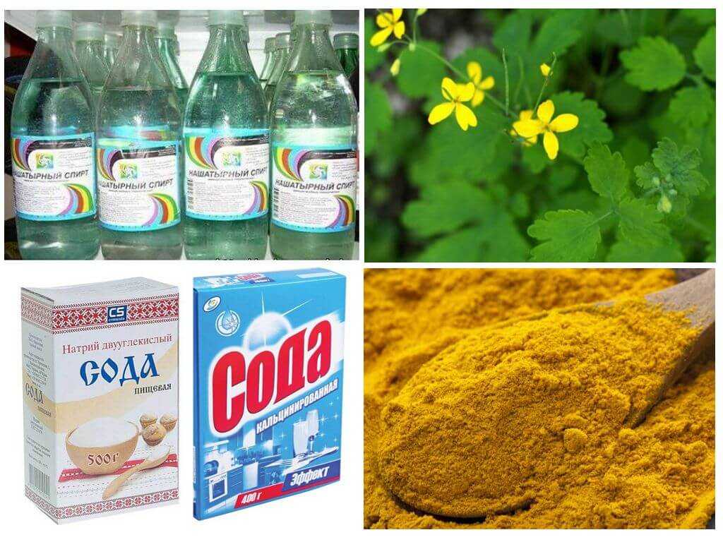 - настой из чистотела: в 10 л воды кладут 1 кг мелко порубленных листьев, кипятят и остужают, перед использованием процеживают и добавляют жидкое мыло.