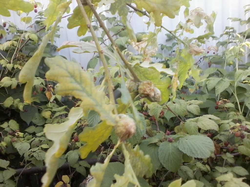 В саду, за городом, растет дуб черешчатый. В этом году впервые появились желуди. И на ветках какие то шишки. Ничего подобного ранее не встречал. Что Это?