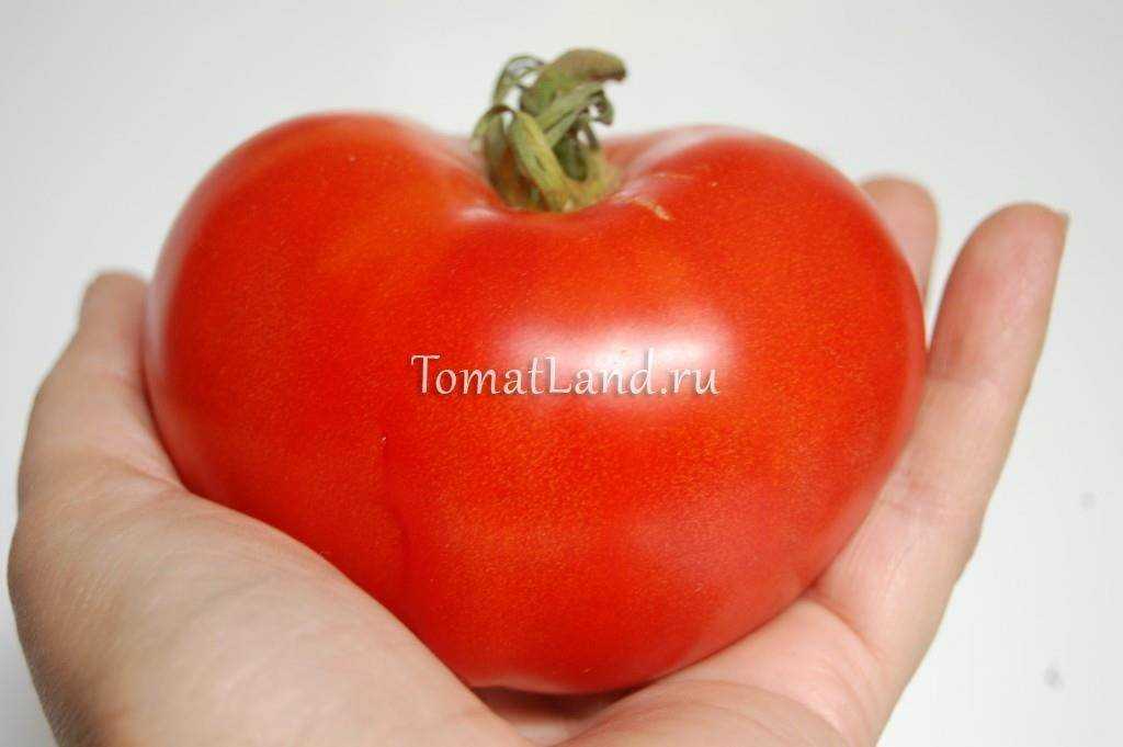 - Плод имеет округлую форму с проявлениями многих ребристости, верхняя часть приплюснутая. Встречается специфическая форма помидоров: двойное и тройное слияние ребристых плодов.