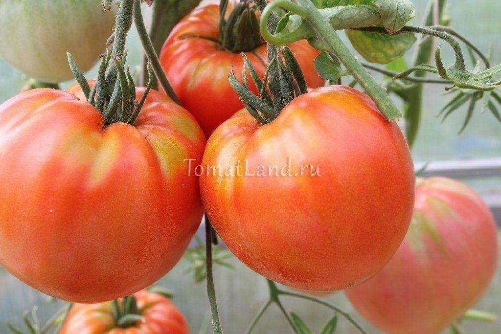 Плоды очень вкусные. Кожура плотненькая, редко растрескивается. Мякоть в меру сочная, сладковато-кислая. Форма овальная, ровная, напоминает сердце. Верхние помидоры вырастают до 200-250 гр., а нижние более крупные. Некоторые достигают 900 и более гр.