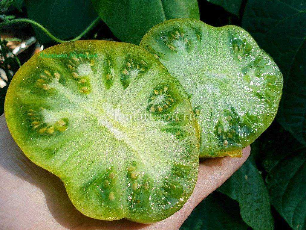 Удивительной особенностью сорта Буденовка является способ его созревания. Плоды начинают созревать и краснеют внутри, только в конце окрашивается кожура. Поэтому зеленовато-белые томаты уже имеют спелую розовую серединку со сладким томатным вкусом.