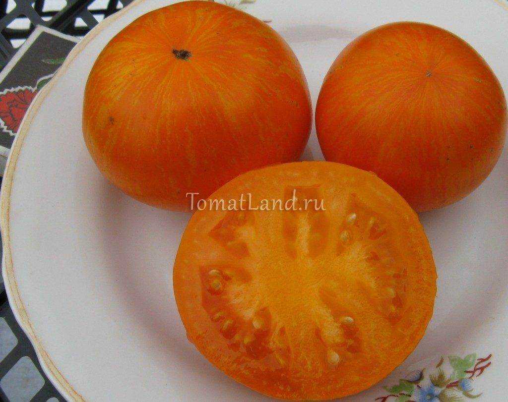 Среднеспелый. Индетерминантный. Высокоурожайный. Практически пустотелые красные с золотистыми полосками плоды, массой 100–150 г, по форме напоминающие сладкий кубовидный перец, отлично подходят для фарширования. Наилучшие результаты сорт томатов «Полосатый пустотелый» (Striped Stuffer) показывает при формировании куста в 2 стебля.
