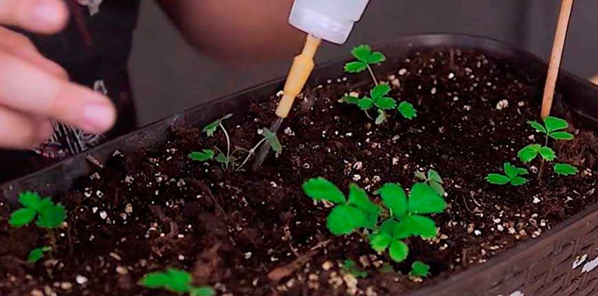 Почвосмесь используют ту же, что и для посева, чтобы сеянец земляники безболезненно и быстро адаптировался