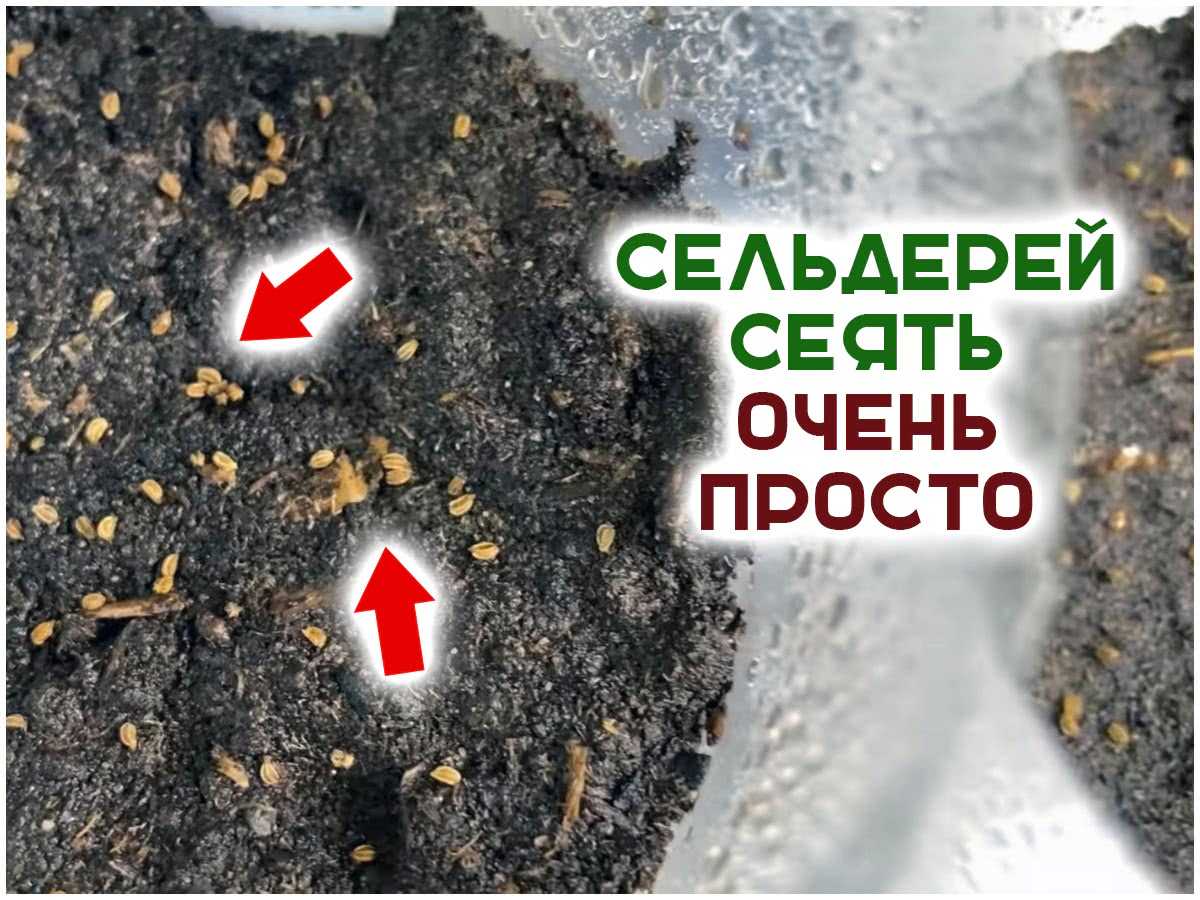 После обработки семена сельдерея рассыпают тонким слоем на влажной ткани для проращивания при температуре 20-22 ºC, и только когда они наклюнутся, их сеют в ящики с питательной почвенной смесью, состоящей из одной части дерновой земли, трех частей низинного торфа, и одной части перегноя с добавлением крупнозернистого песка. В ведро субстрата нужно внести чайную ложку мочевины и стакан древесной золы.