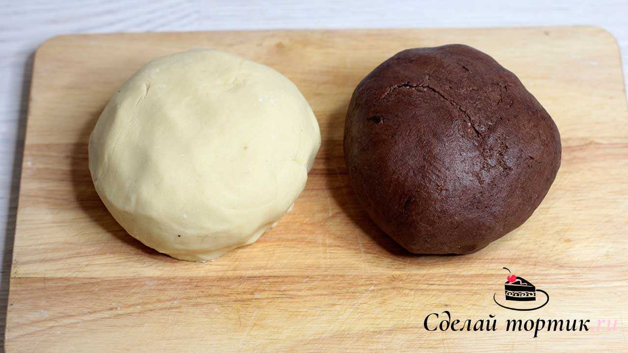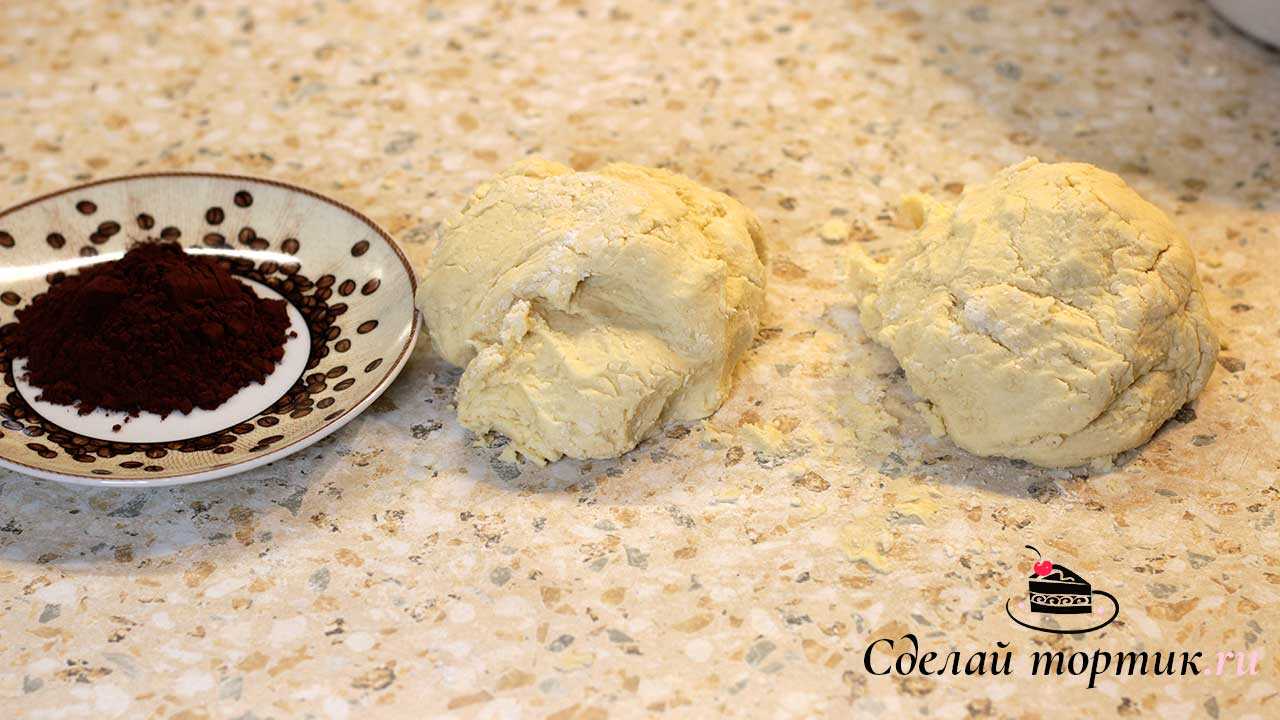 4. Затем тесто делим на две части, в одну из частей вмешиваем какао.