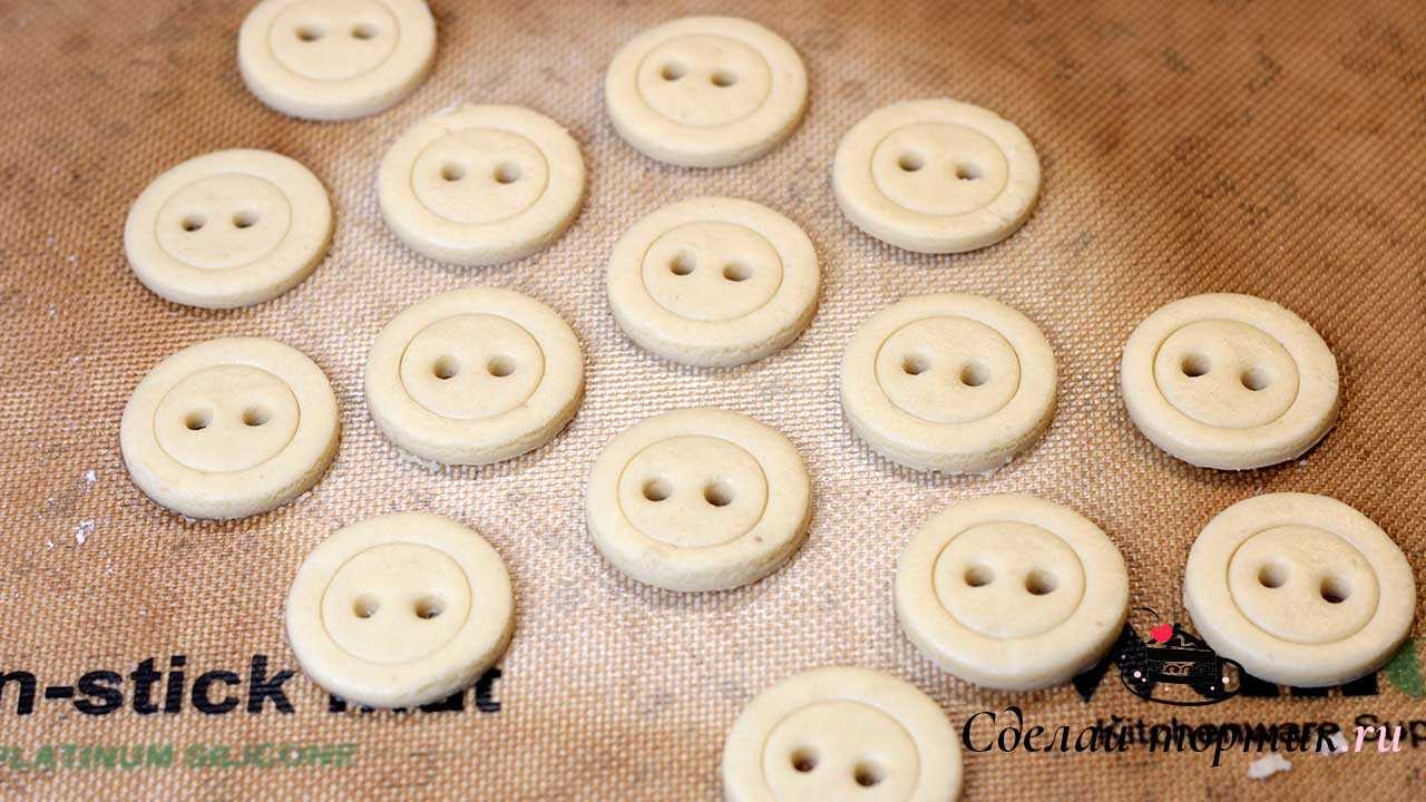 9. Далее коктейльной трубочкой продавливаем отверстия у «пуговиц». Духовой шкаф разогреваем до 180 градусов, выпекаем печенье 10 — 12 минут.