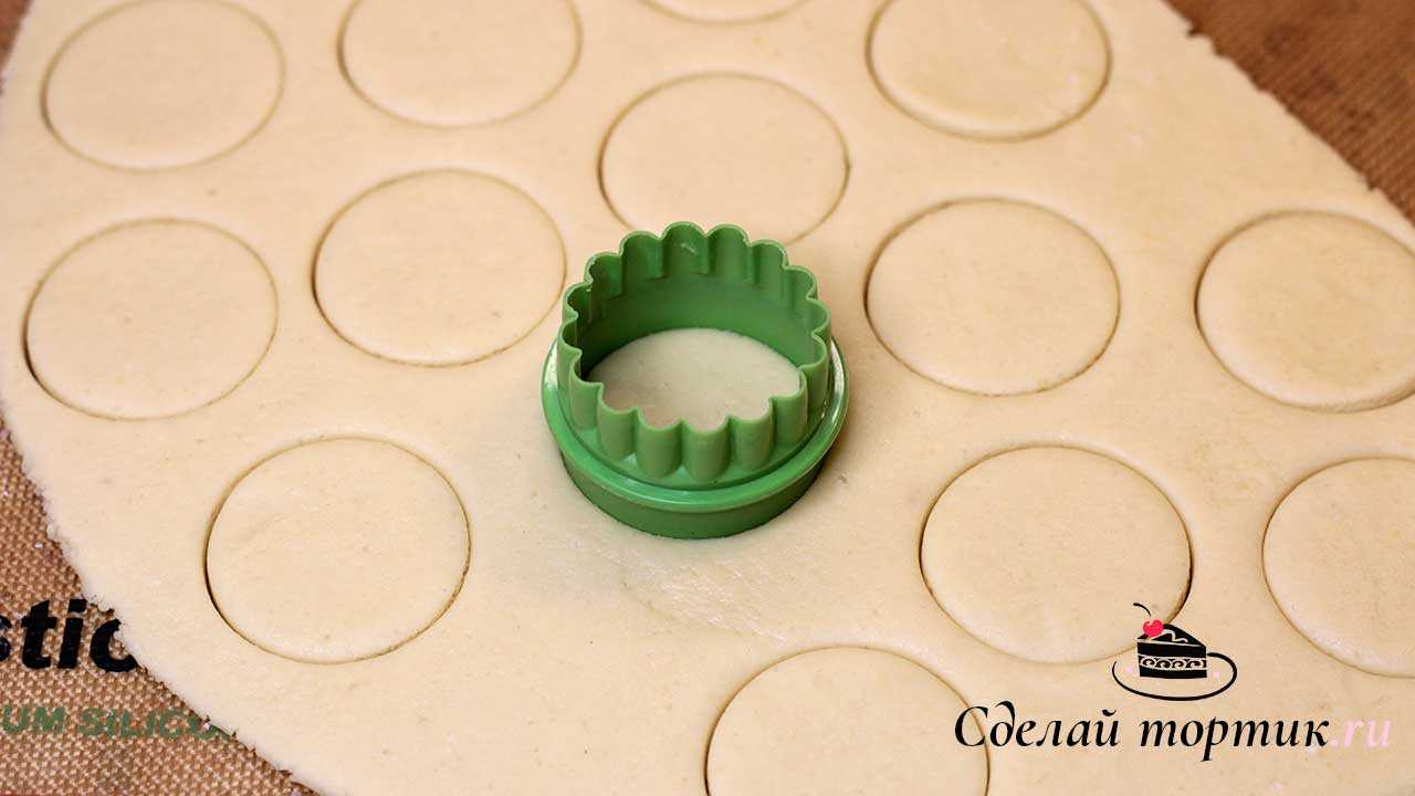 7. После того как тесто охладилось, раскатываем в пласт толщиной 0,7 мм, вырезаем кружки. Шоколадное тесто пока оставляем в холодильнике.