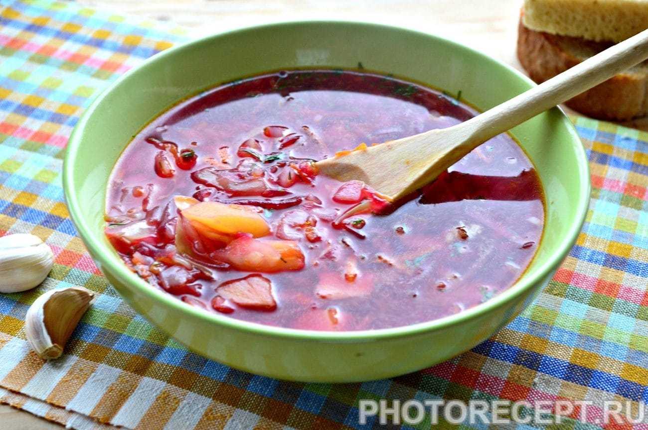 Вкусный борщ со свининой, свеклой и капустой, классический рецепт со сметаной