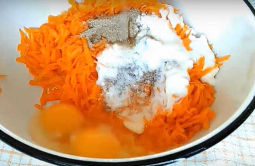 - Натертые овощи избавить от жидкости и добавить к яичной смеси. При надобности досолить. Хорошо размешать.