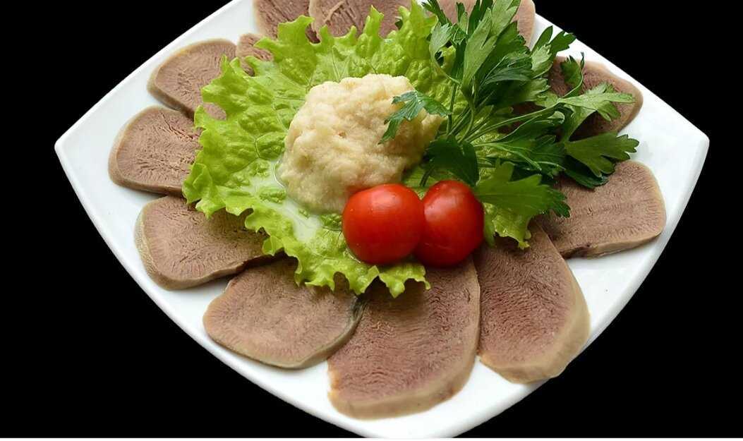 Язык говяжий всегда пользуется успехом на праздничном столе, особенно если приготовить блюдо заранее, оформив его наподобие известного ювелирного украшения.