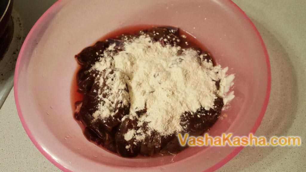 - Печень промываем, но только по необходимости, купленную в вакуумной упаковке можно резать сразу же. Кусочки должны быть не более 3-4 см в длину и 1-1,5 см в ширину.