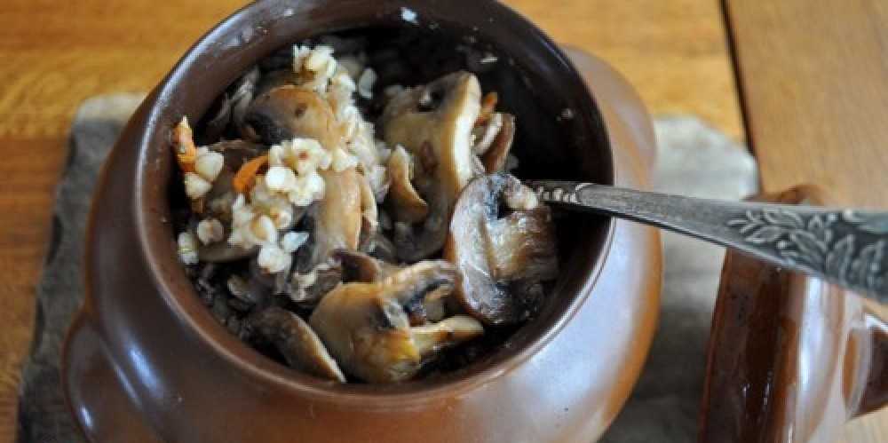 Рецепт 3. Гречка с мясом и грибами в горшочках