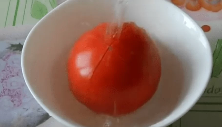 На нем нужно сделать крестообразный разрез и обдать кипятком.