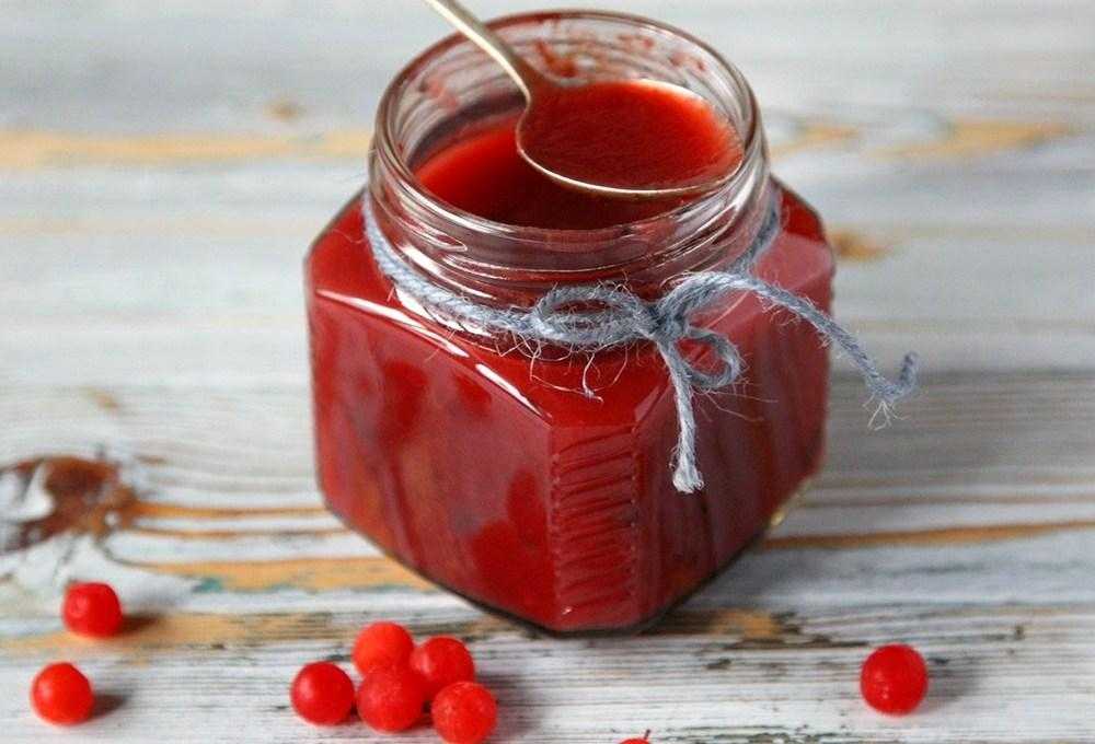 - Часто помешивая, варить около часа. Пену нужно вовремя убирать. Как только калиновое желе готово, разложить заготовку по стерильным банкам, крепко закрыть прокипяченными крышками.