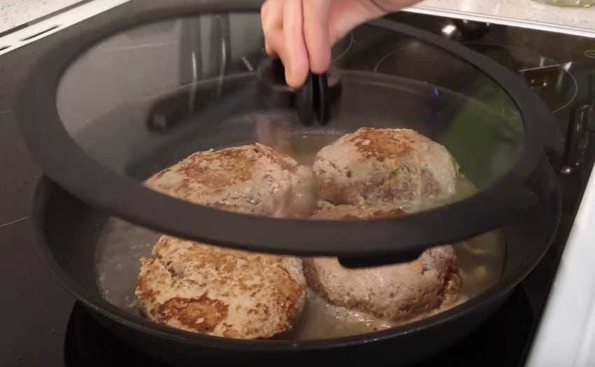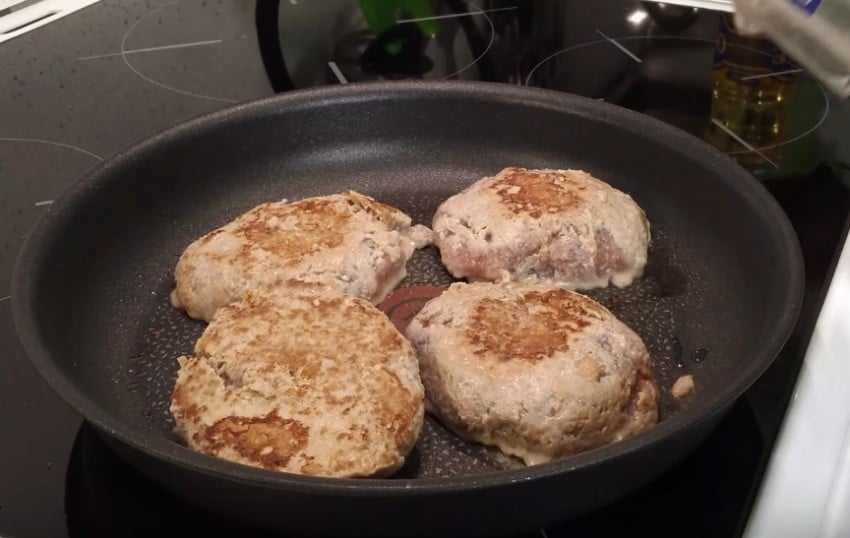 В процессе готовки котлеты немного приподнимутся. Главное не упустить момент и не дожидаться пока они станут плоскими. Это означает, что мясо потеряло сок и блюдо окажется суховатым.