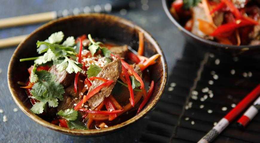 Это отличное блюдо для быстрого ужина. Нежная печёнка будет готова за считанные минуты, а овощи останутся хрустящими. Следите, чтобы масло в воке хорошо разогрелось. Продукты должны быстро обжариваться, а не тушиться.