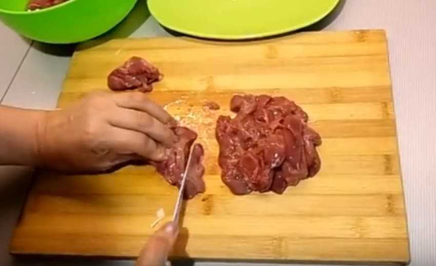 4. Промойте субпродукт под проточной водой и просушите. Нарежьте длинными полосками.