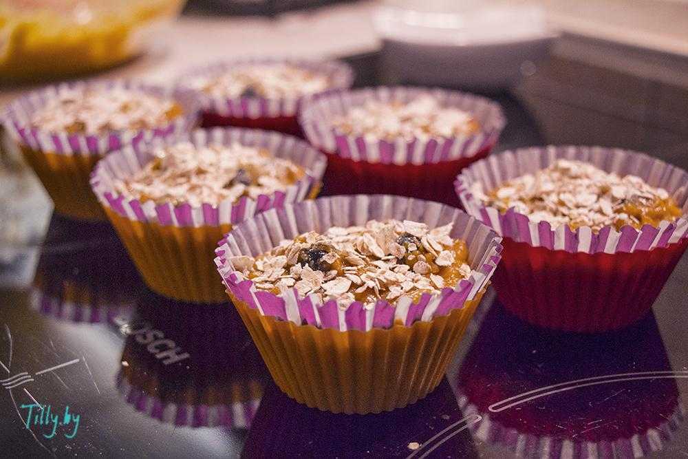 И посыпем сверху будущие маффины овсяными хлопьями.
