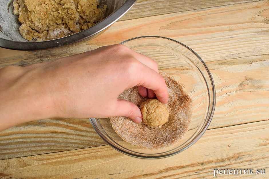 В отдельной емкости смешайте все ингредиенты и оставьте на 20−30 минут. Затем сформируйте печенье и отправьте в духовку на 30 минут. Температура выпекания 180 градусов.